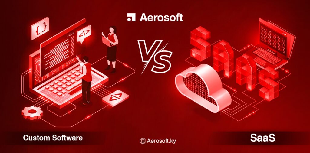 Custom software is built specifically for your business needs and fully owned by you, while SaaS (Software as a Service) is a subscription-based platform shared across multiple users with standardized features.